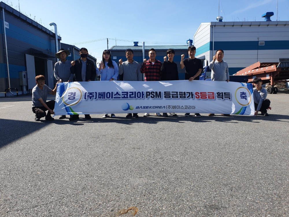 (주)베이스코리아는 2023.08.16~2023.08.18 까지 진행한 공정안전관리(PSM)이행상태 평가에서 S등급을 획득 하였습니다.